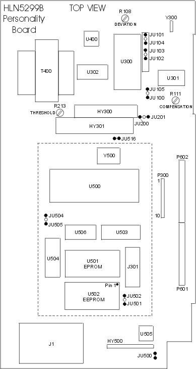 The trunking Syntor X 9000E models are actually conventional Syntor X 9000 radios with a new internal trunking controller board plugged into J301, different Personality Board jumper settings and different firmware in U501. These radios can be easily converted into conventional Syntor X 9000 radios. BTW, the trunking Syntor X 9000 radio is based on a trunking Syntor X radio drawer that has a special trunking Personality Board, so do not confuse these two very different trunking radios (see next paragraph).